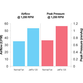 Immensely Powerful Fan BladesUltra-thin fan blades enable minimal resistance and maximum performance – up to a staggering 95 CFM of airflow with PWM functionality. Unlike other fans that disperse air over a large area, JetFlo generates concentrated airflow in a tight radius. |